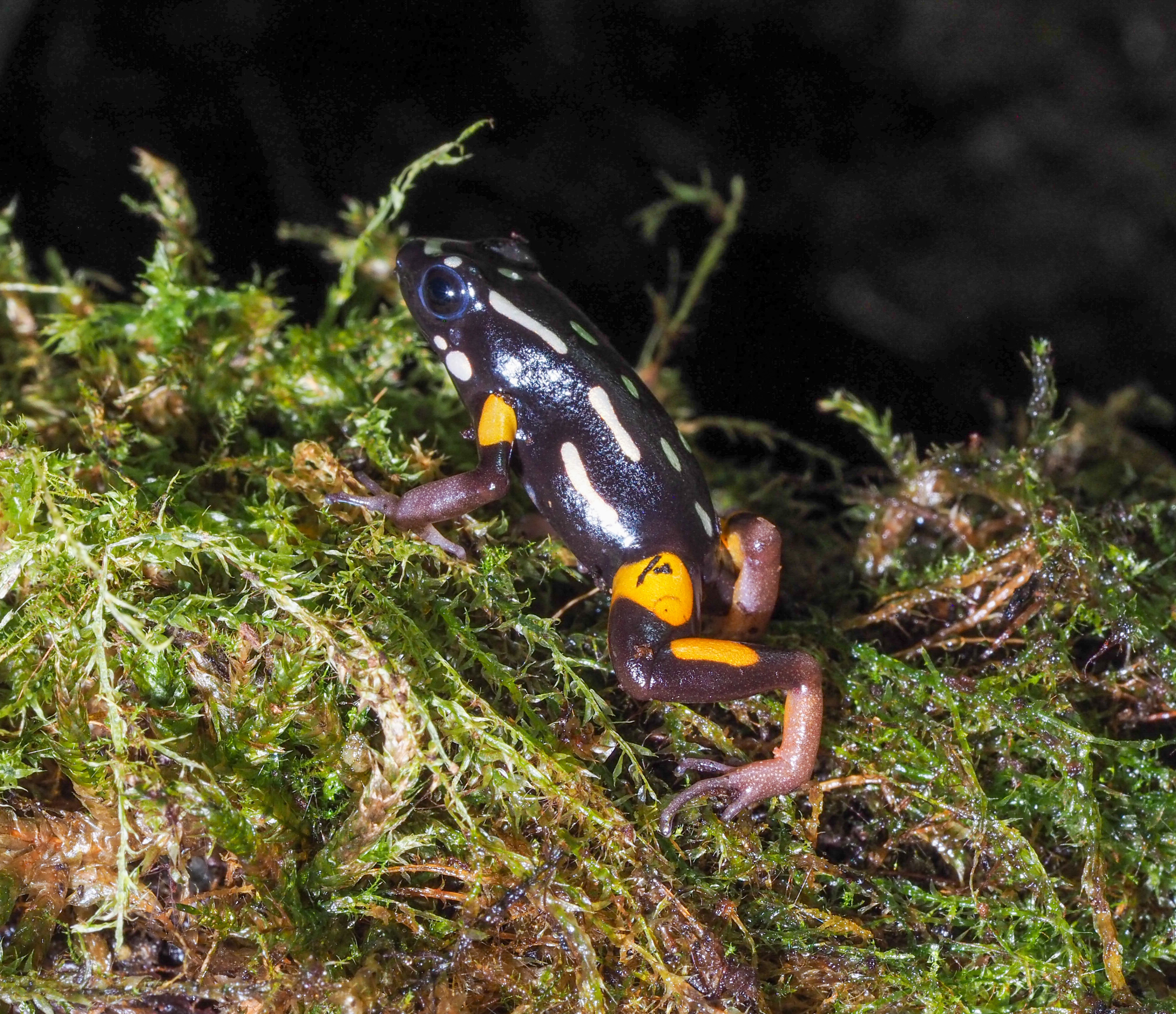 Während der Paarungszeit rufen die Männchen nach den Weibchen, diese können keine Rufe abgeben. Die Weibchen legen durchschnittlich 2 bis 6 Eier pro Gelege, Maximalgrößen von bis zu 12 Eiern sind dokumentiert. Nach dem Schlupf der Kaulquappen werden diese von der Mutter einzeln in kleine Wasseransammlungen, beispielsweise in Baumhöhlen (Phytotelmata) oder Nussschalen, verfrachtet, wo sie sich von Insektenlarven, anderen Kaulquappen und Pflanzenmaterial ernähren. Sie und die Jungfrösche wachsen sehr schnell und erreichen ihre Geschlechtsreife mit 5 bis 7 Monaten.